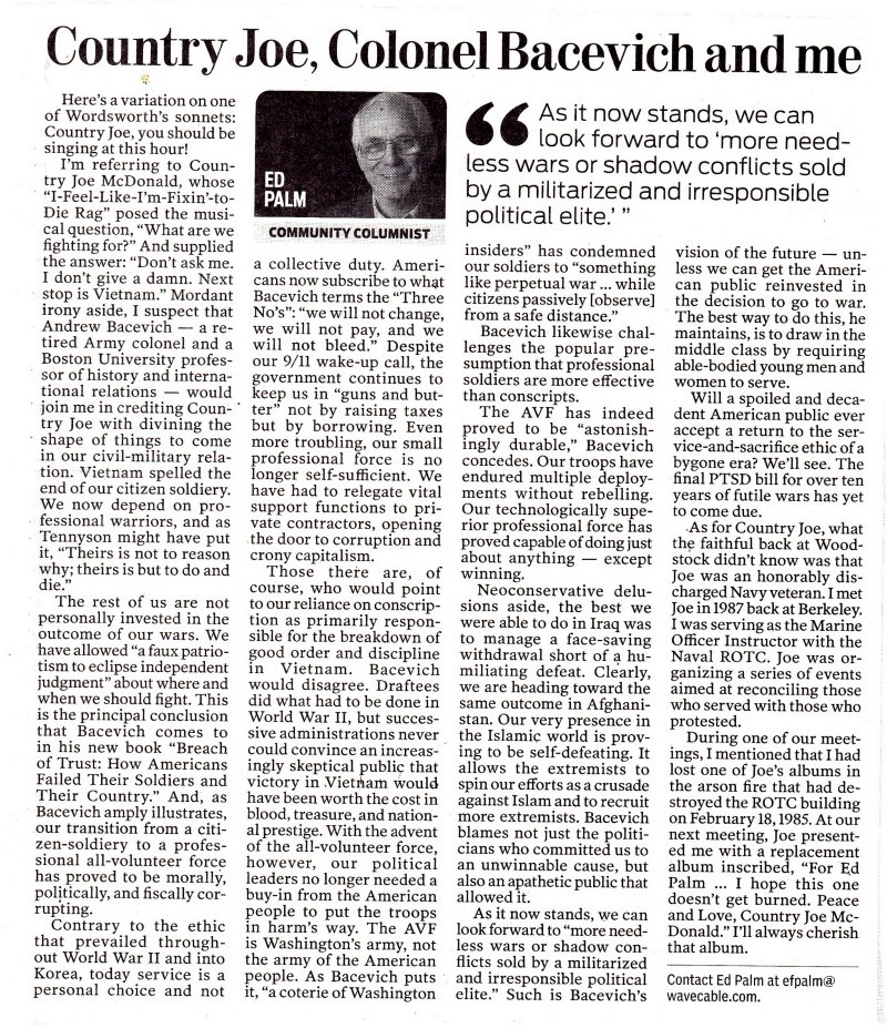 Ed Palm has written a column for the Kitsap (Washington) Sun about me and the all-volunteer military.